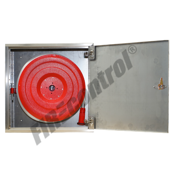 Hadicový navijak / hadicový systém s rozmermy skrine 700x700x200 slovenského výrobcu v celonerezovom prevedení. Hydrantový systém s upevnením na stenu alebo do steny (pridáva sa vonkajší rámik).